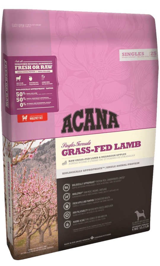 Acana tahılsız kuzu etli köpek maması, tek protein kaynağı olarak Kuzu eti kullanılmıştır. Yeni Zelanda Kuzu eti hassas deriye sahip köpekler için büyük bir çözüm kaynağı olarak sunulmuştur. Bu benzersiz sınırlı içerik formülünde tek hayvansal protein kaynağı olan kuzu etine ilave olarak sadece lezzetli ve kırmızı elma kullanılmıştır. Pirinç ve mısır gibi yüksek glisemik tahıllar yerine British Columbiadaki Ocanagan Vadisinden gelen taze sebze ve meyvalar ile Alberta yulafı kullanılmıştır. Alberta yulafı düşük glisemik indekse sahip hypoallerjenik tek kaynaklı bir tahıldır. Alberta Kanada da bulunan Ödüllü tesislerde üretilen ve acana kuzu etli köpek maması ile beslenen köpeklerin hem sağlıklı hem de güçlü bir köpek olabilmesi için doğal olduğu kadar da lezzetli bir seçim.