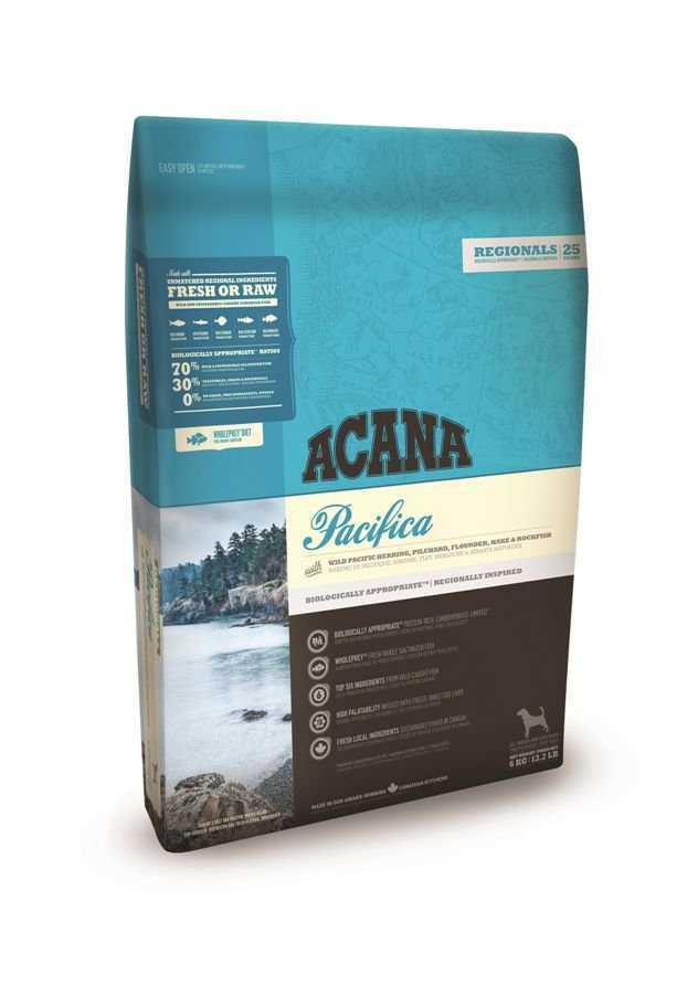 Acana Regionals Pacifica Köpek Maması,Tüm ırklar için,Kanada’nın soğuk ve bakir Pasifik sularının zengin deniz ürünlerini yansıtan ACANA Pacifica Kuzey Vancouver Adasından sürdürülebilir ve serbest olarak avlanan taze ve yöresel Kanada balığı ile doludur. Günlük olarak taze ve bütün teslim edilen Pasifik ringa balığı, sardalya, pisi balığı, mezgit balığı ve kaya balığı ile dopdolu olan ACANA Pacifica uzun bir katkı maddesi listesi olmadan köpeğinizi doğal olarak beslemektedir. Her yerde güvenilen, sınırlı karbonhidrat ve zengin protein içeriğine sahip ACANA tüm ırk ve yaşlarda en üst kondisyon seviyesini sağlamaktadır. İçeriklerimizi okuyun, siz de bize hak vereceksiniz.