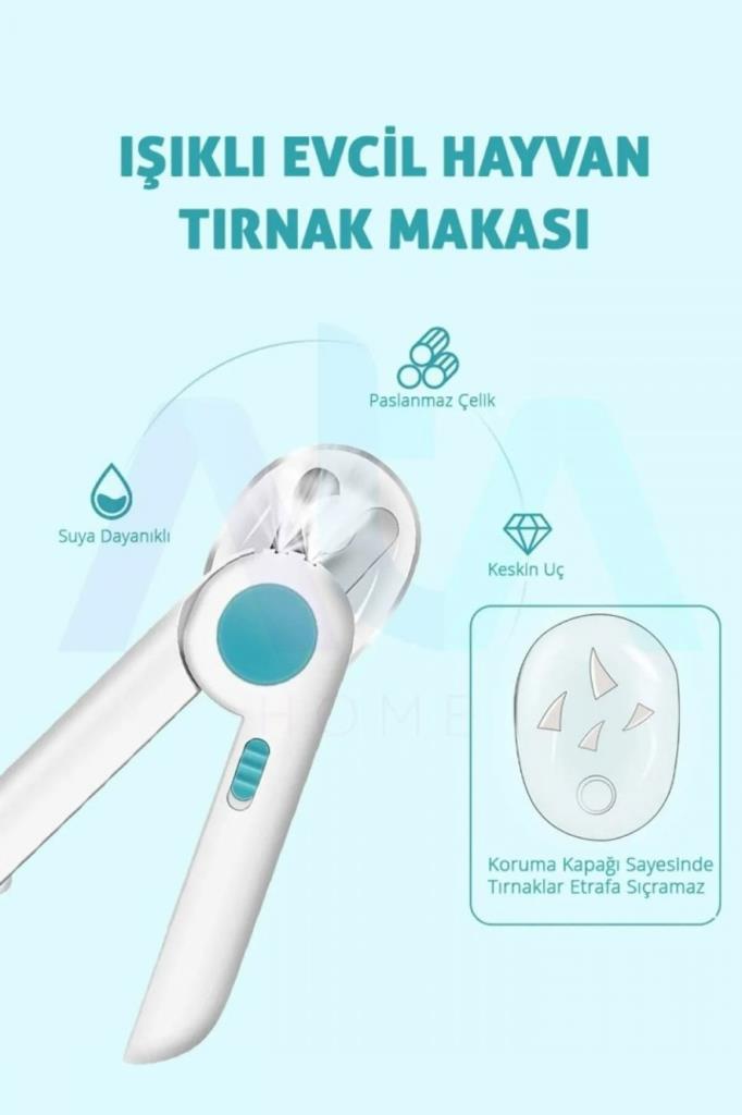 Ata Home Işıklı Kedi Köpek Tırnak Makası Pet Evcil Hayvanları Için Korumalı Led'li Törpülü Tırnak Makası, Ata home ışıklı ledli korumalı kedi , köpek tırnak makası . Evcil hayvanlarınızın tırnaklarını artık daha rahat ve güvenli olarak kesebilirsiniz . Kedinizin veya köpeğinizin tırnaklarını keserken led ışık sayesinde daha rahat görmenizi ve kesim yapmanıza olanak sağlar. Evcil hayvanlarınızın tırnağını keserken şeffar koruması sayesinde kesilen tırnak parçalarının yüzünüze veya etrafa sıçramasını önler. Sökülüp takılabilir olarak tasarlanmıştır. Malzemesi paslanmaz çeliktir. Plastik kısmı sert kırılmaz plastikten üretilmiştir. Keskin bıçakları sayesinde rahat ve hassas kesim yapılmasına olanak sağlar. Kesim yaptıktan sonra törpüleme için törpü aparatı mevcuttur. Kullanım sonralarında kedi tırnak makasını kapalı tutmak için elastik aparatı vardır.