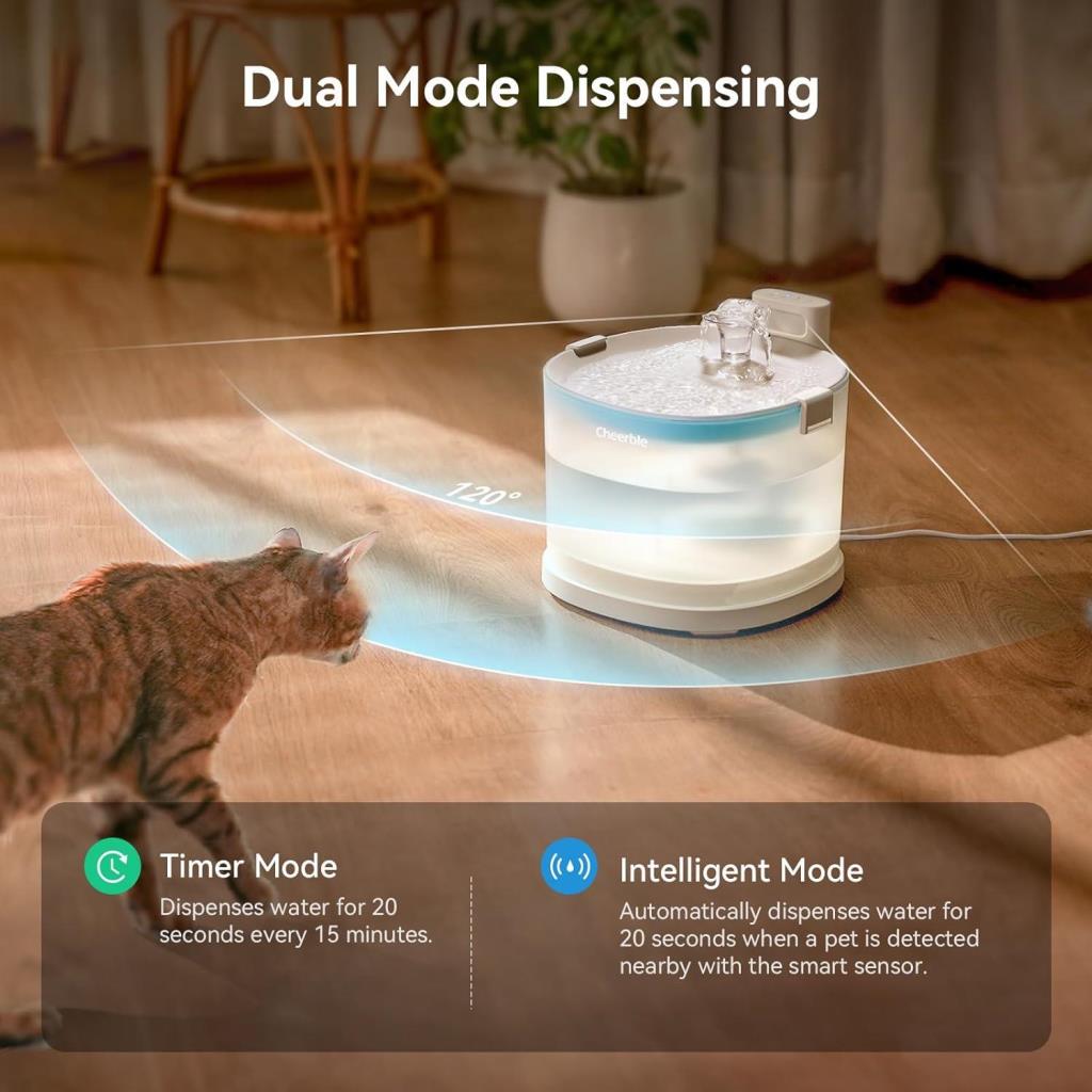 Cheerble E1+ Plastik Hazneli Şarjlı Otomatik Kedi Su Pınarı, Cheerble E1+, kedinizin günlük su tüketimini artırmak ve sağlıklı bir yaşam tarzını desteklemek için tasarlanmış modern ve şık bir otomatik su pınarıdır. Plastik haznesi ve şarjlı tasarımı sayesinde hem hijyenik hem de kullanımı kolay bir çözümdür. Şık ve Kompakt Tasarım: 22 x 20 x 18 cm boyutlarıyla her ortama kolayca uyum sağlar.