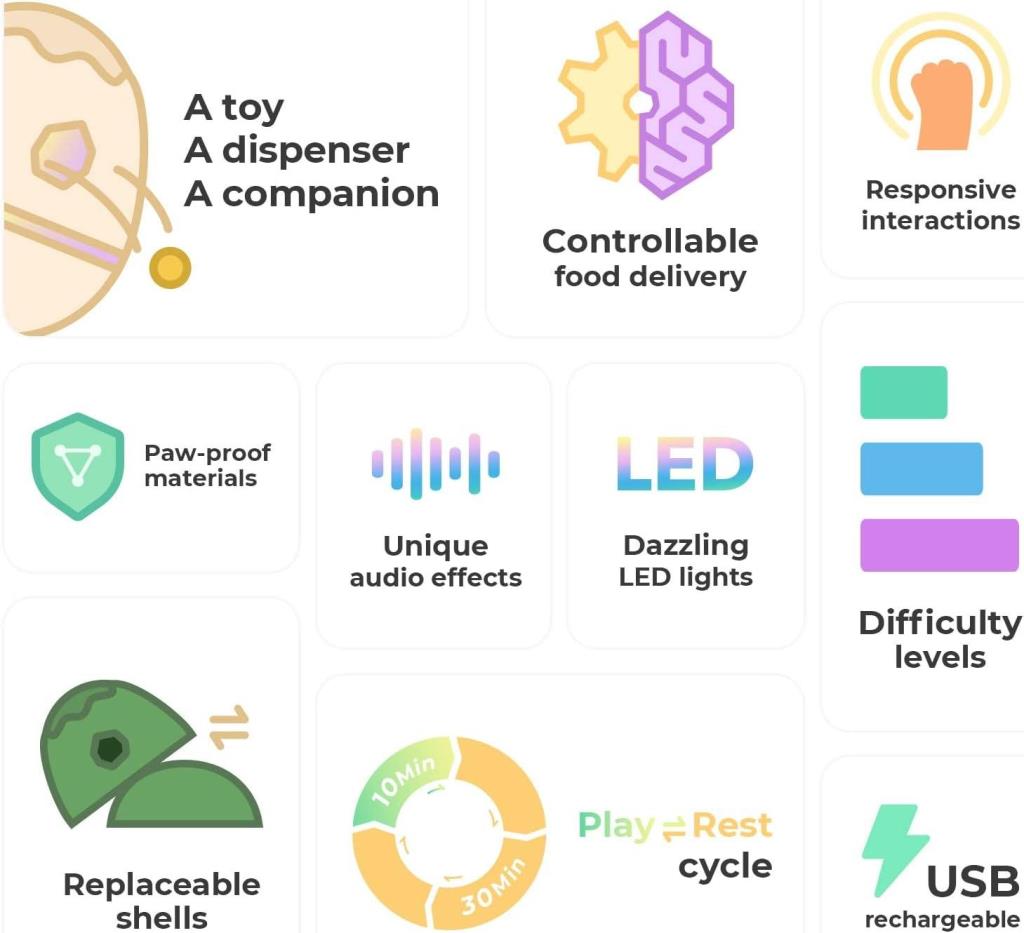 Cheerble İnteraktif Yumurta Oyuncağı (Yem Atma Özelliği, Şarjlı), Yem Atma Özelliği: Oyun sırasında kediniz veya köpeğiniz ödül olarak yem alabilir. Akıllı Hareket Teknolojisi: Rastgele hareket ederek evcil hayvanınızın ilgisini çeker. Şarjlı ve Uzun Süreli