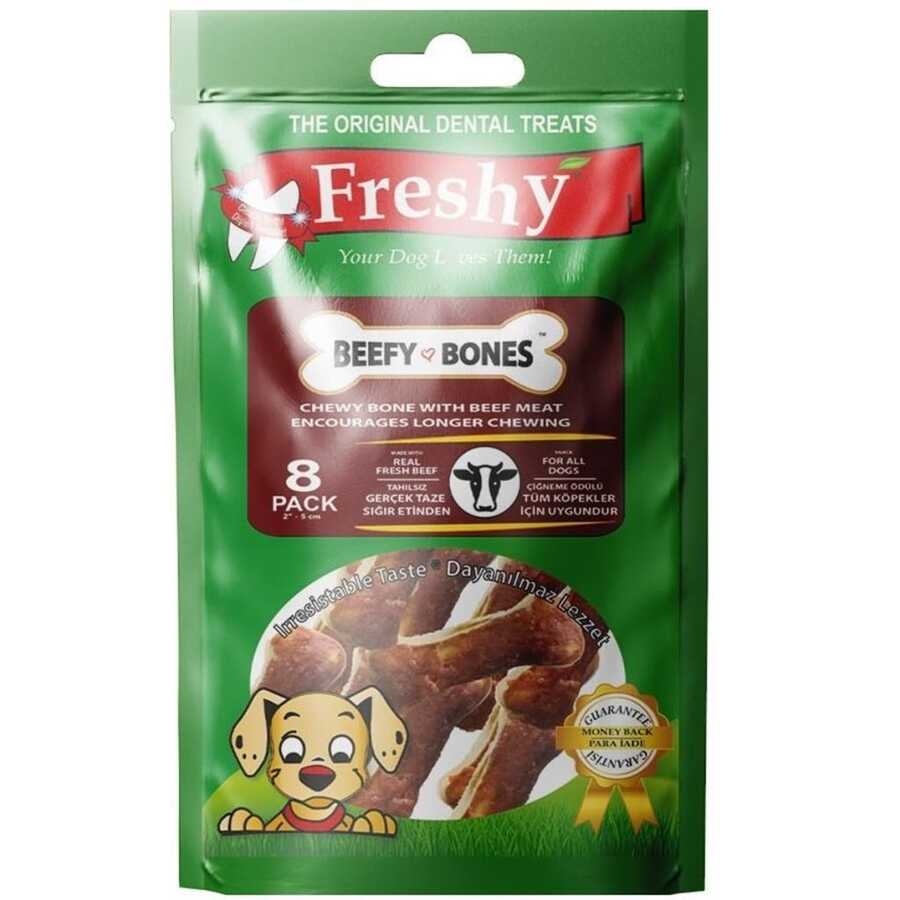 Freshy Biftek Kaplı Pres Kemik 8 Adet 5 Cm Lezzetli Kemik Ödülleri Ürün BilgisiFreshy Biftek Kaplı Pres Kemik Doğal ve taze malzemelerden üretilen Freshy ödülleri Freshy