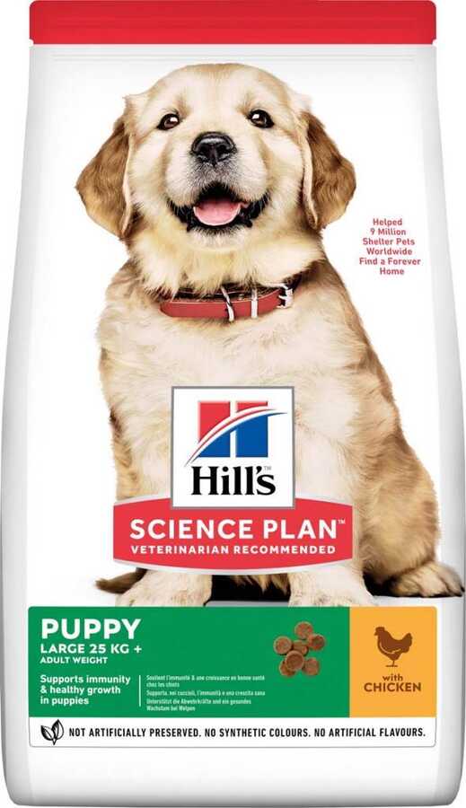 Hill’s Science Plan Puppy Large Breed, Hills Science Plan büyük ırklar için yavru köpek maması, yetişkin ağırlığı 25 kg üzeri olan yavruların ihtiyacı olan tüm besin maddelerini içerdiğinden dengeli beslenmesini sağlar. Kemiklerin ve eklemlerin sağlıklı gelişimine yardımcı olur. Puppy Large Breed’in büyük ırklar için ekstra özellikleri, Kasların güçlenmesini ve yağın enerjiye dönüşmesini sağlayan L-carnitine içerir. Doğru büyüme oranı sağlayan kontrollü yağ ve kalori içerir. Büyük ırk yavru köpekler için ideal dengede olan vitaminler ve mineraller içerir. Hill’s Science Plan ürünleri DHA ile zenginleştirilmiştir. DHA, doğal olarak anne sütünde bulunur ve yavru köpeğinizin beyin ve görme fonksiyonlarını geliştirir.