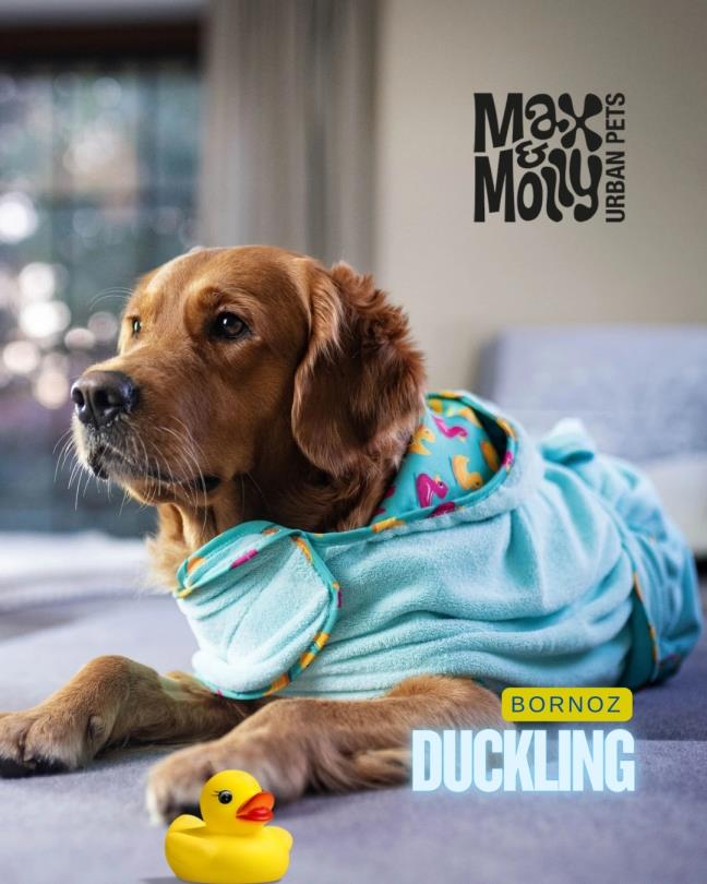 Max & Molly Duckling Köpek Bornozu, Max & Molly Köpek Bornozu, süper yumuşak ve rahat yapısıyla dikkat çeker. Hızlı kuruma özelliği ve emici yapısıyla pratik kullanım sunar. Ayarlanabilir kapanışı ve farklı bedenlere uygun kemeri ile kolayca giydirilir. Rahat bir kapüşonu bulunmaktadır. Banyo sonrası, yağmurlu yürüyüşlerden sonra veya evde rahatlamak için idealdir. Bornoz, köpeğinizin başından geçirilmeden kolayca giydirilebilir. Göğüs kısmındaki ayarlanabilir cırt cırtlı kapatma ve kuşak, neredeyse her dört ayaklı dost için mükemmel bir uyum sağlar. Sevimli görünümü tamamlayan yumuşacık bir kapüşon da bulunur.