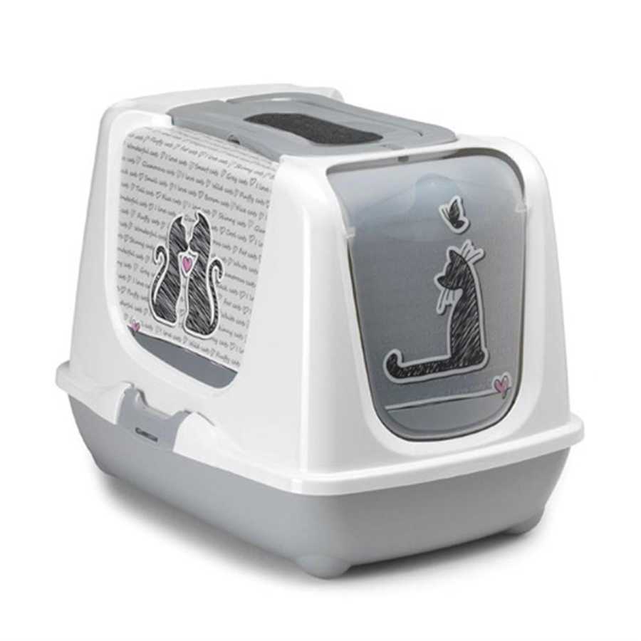 Moderna Trendy Kapalı Kedi Tuvaleti Love,Kömür filtreli, kapalı kedi tuvaletleri moderna şık tasarımları ile yeni bir görsellik katarak sizlere özgürlük tanımıştır. Moderna Trendy Cat kedi tuvaleti 3 parçadan oluşmaktadır.Üst kabin kısmı alt tablası ve kapağı ile oldukça kullanışlı bir üründür.Kapalı kedi tuvaletleri kedinizin tuvalet esnasında çıkaracağı tozun eve dağılmasına engel olur.Tabla kısmına yaklaşık 5 cm kalınlığında kumu seriniz ve kabini klipsleri ile tablaya monte ediniz.Standart boydaki kediler için ideal bir tuvalet kabıdır.Kir tutmayan pürüzsüz plastiği ile temizlenmesi kolaydır.