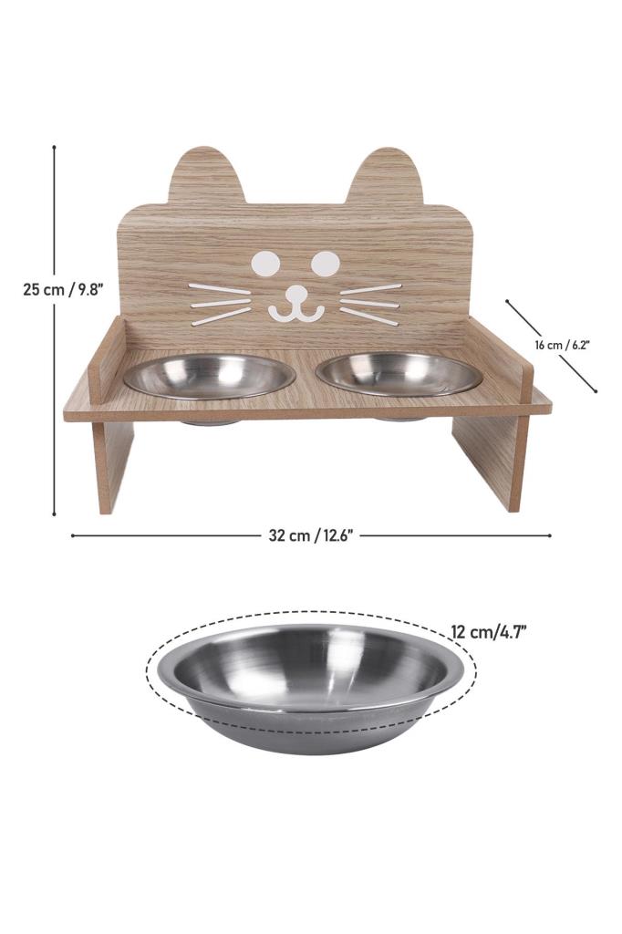 8 mm MDF ahşaptan CNC kesimle üretilen stand, uzun ömürlü kullanım için sağlam bir yapıya sahiptir. Üzerindeki kulak detayları ürüne sevimli bir görünüm kazandırır. 2 adet 12 cm çapında çelik mama ve su tasları, 330 ml kapasiteye sahiptir ve bulaşık makinesinde yıkanabilir. Bu sayede temizliği son derece pratiktir ve hijyen sağlar.