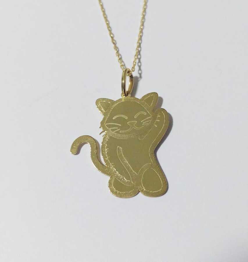 Petcanlar El Sallıyan Kedi Gümüş Kolye Gold 925 Ayar