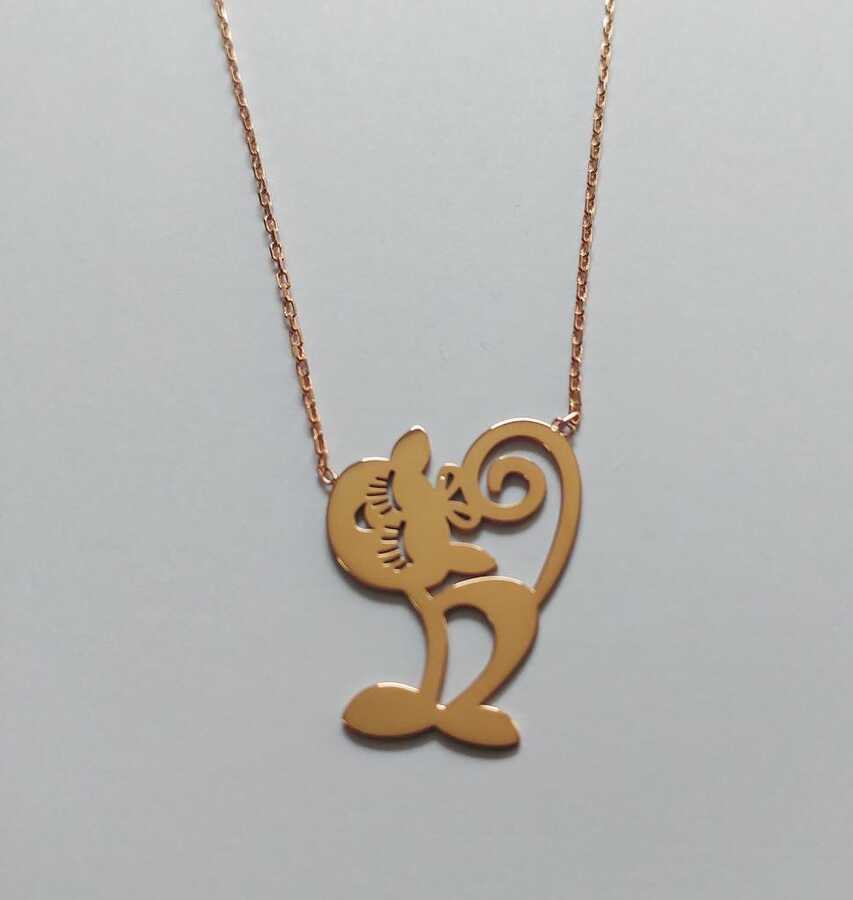 Petcanlar Gülen Yüzlü Kedi Gümüş Kolye Rose 925 Ayar