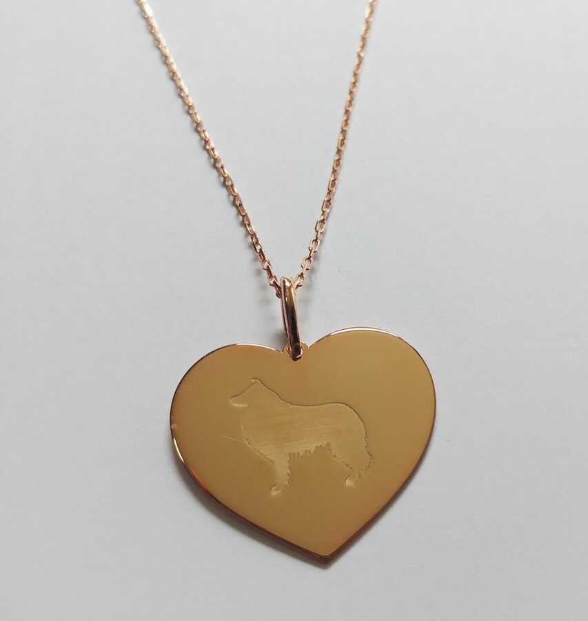 Petcanlar kalp desenli içi dolu köpek figürlü gümüş kolye 925 ayar.