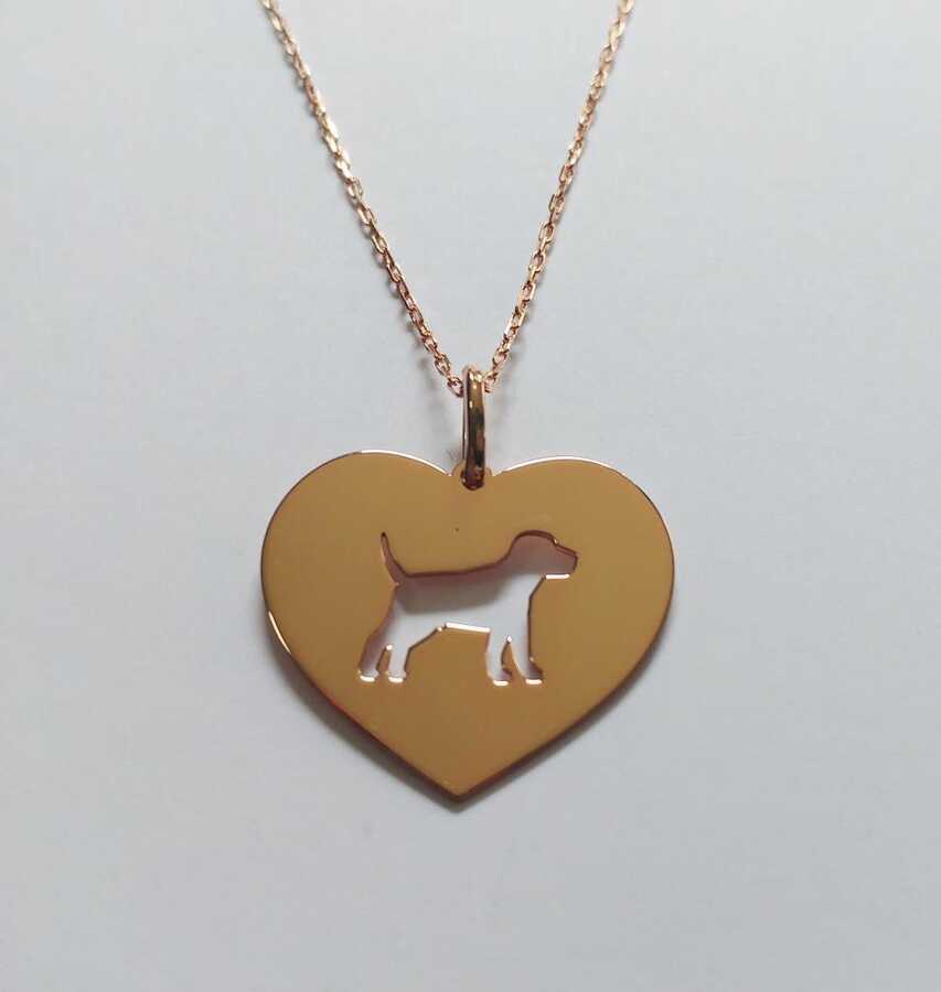 Petcanlar kalp desenli köpek figürlü gümüş kolye rose 925 ayar.