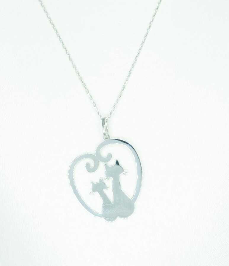 Petcanlar Kalp İçinde Kedi Gümüş Kolye Silver 925 Ayar