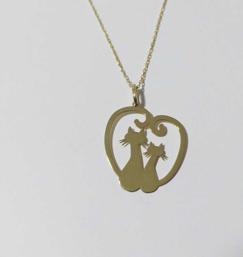 Petcanlar Kalp İçinde Kedi Gümüş Kolye Gold 925 Ayar