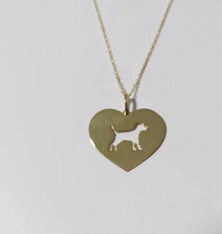 Petcanlar lazer kesim kalp şekilli köpek figürlü gümüş kolye gold 925 ayar.