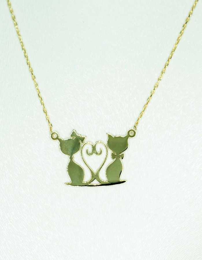 Petcanlar Kalpli Çiftli Kedi Gümüş Kolye Rose 925 Ayar