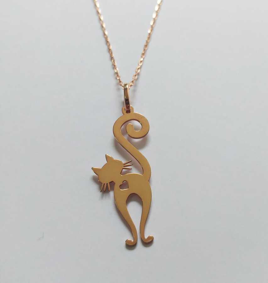 Petcanlar Kalpli Kedi Gümüş Kolye Rose 925 Ayar