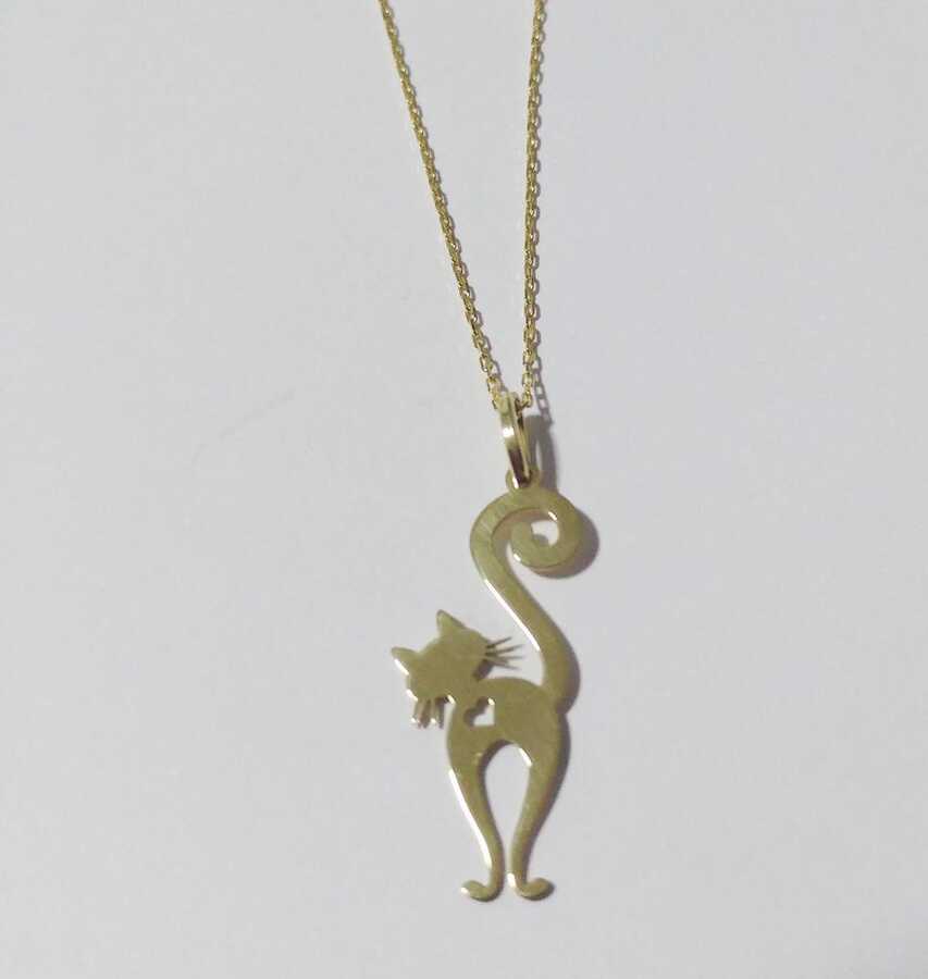 Petcanlar Kalpli Kedi Gümüş Kolye Gold 925 Ayar