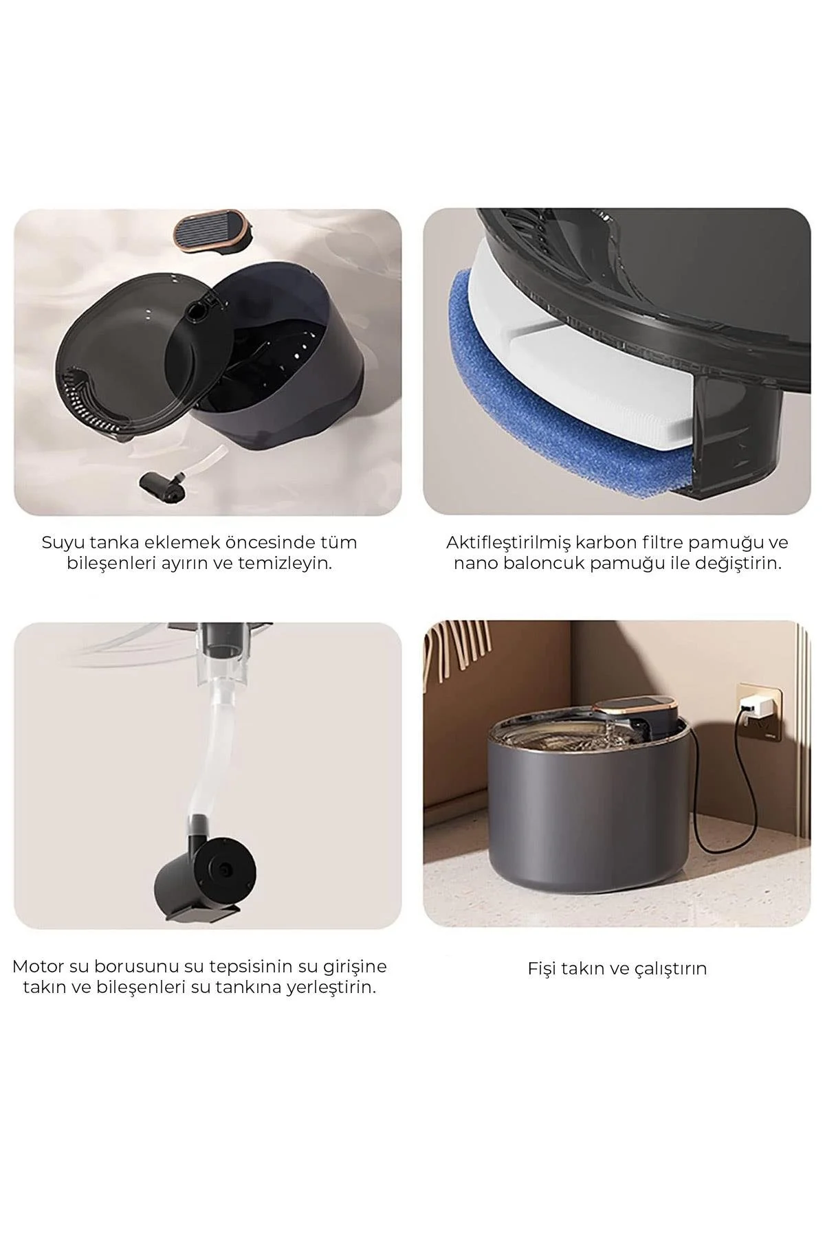 Petcanlar Kedi Köpek Su Sebili Otomatik Su Pınarı Su Çeşmesi, Evcil Hayvan Su Pınarı, Ultra sessiz çalışan motoru sayesinde sürekli devirdaim sapğlayarak suyun aktif olmasını sağlar. Su bittiğinde led ışığı ile uyarıda bulunur. Su bitince motor otomatik olarak çalışmayı durdurur. Aktif karbon filtresi sayesinde suyun sürekli temiz olmasına olanak sağlar. Geniş su haznesi 3 Lt su tankına sahiptir. Temizliği ve kurulumu oldukça rahattır. Eksik suyu tamamlamak için motoru durdurmadan haznenin üstünden ilave su eklenebilir. Su motoru USB kablo ile gönderilmektedir. 220V-240V prizden 5W1A adaptör ile çalışır.