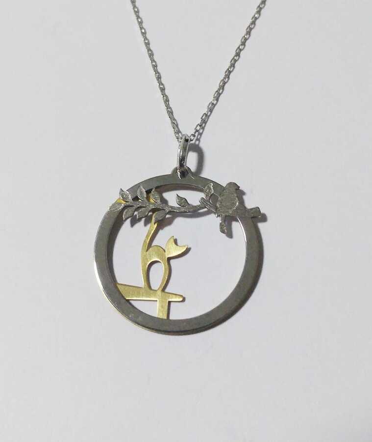 Petcanlar Kedi ve Kuşlu Yuvarlak Çember Gümüş Kolye Silver-Gold 925 Ayar