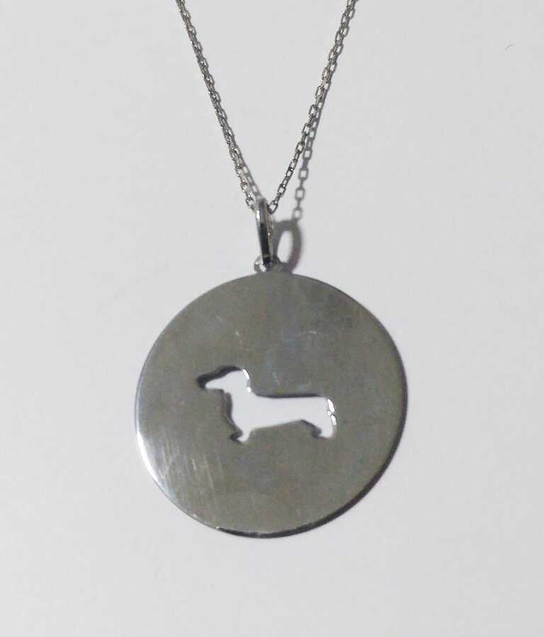 Petcanlar köpek figürlü yuvarlak gümüş kolye 925 ayar.