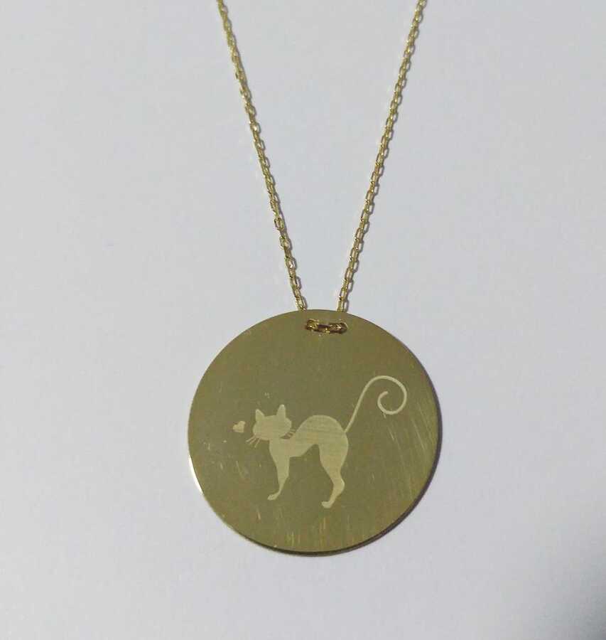 Petcanlar Lazer İşleme Kesim Kedi Gümüş Kolye Gold 925 Ayar