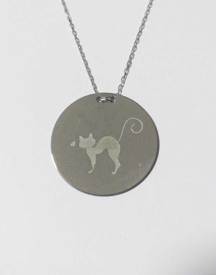 Petcanlar Lazer İşleme Kesim Kedi Gümüş Kolye Silver 925 Ayar