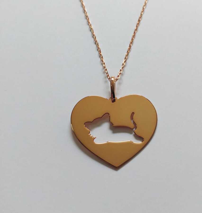Petcanlar Lazer Kesim Kalp İçinde Yavru Kedi Gümüş Kolye Rose 925 Ayar