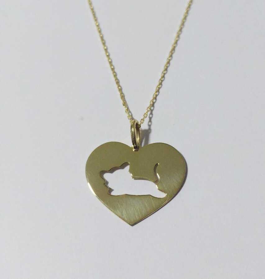 Petcanlar Lazer Kesim Kalp İçinde Yavru Kedi Gümüş Kolye Gold 925 Ayar