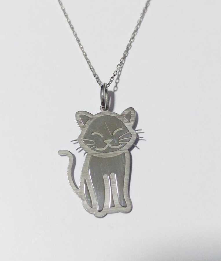 Petcanlar Matlı Parlak Kedi Gümüş Kolye Silver 925 Ayar