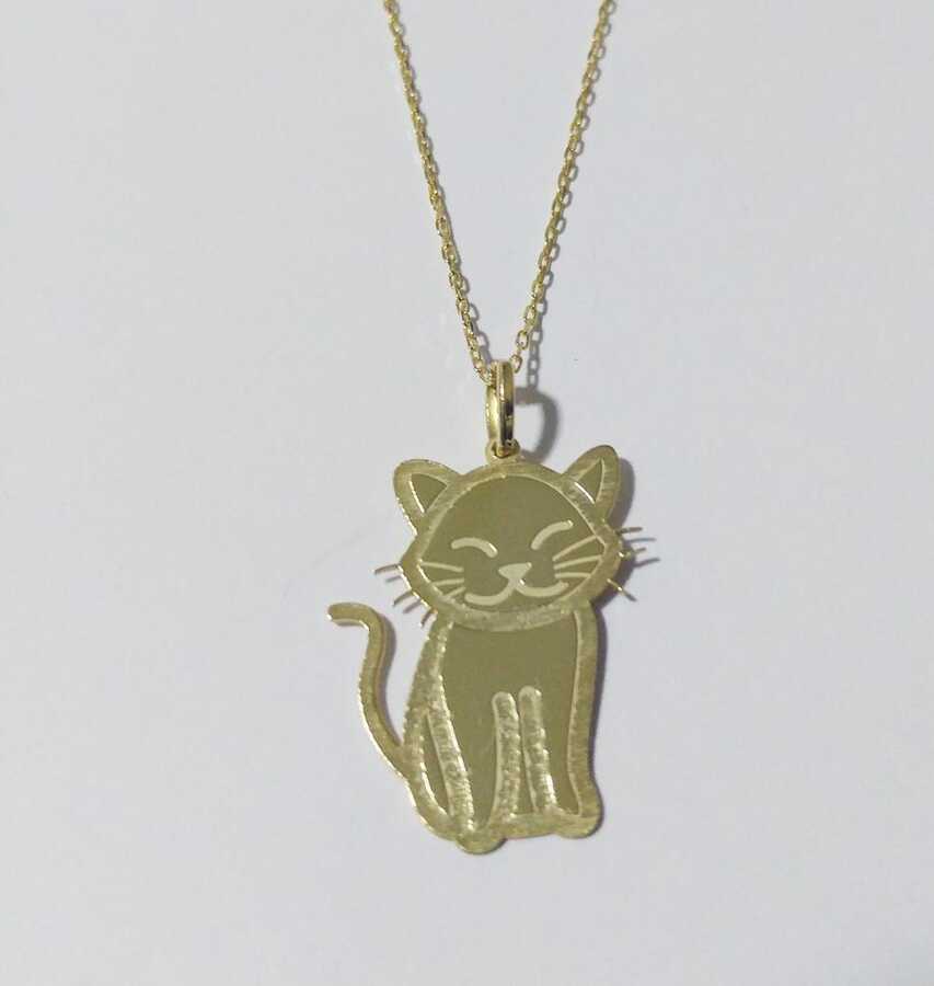 Petcanlar Matlı Parlak Kedi Gümüş Kolye Gold 925 Ayar