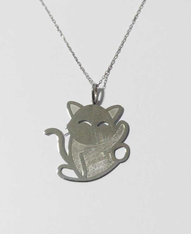 Petcanlar Tonbul Kedi Gümüş Kolye Silver 925 Ayar