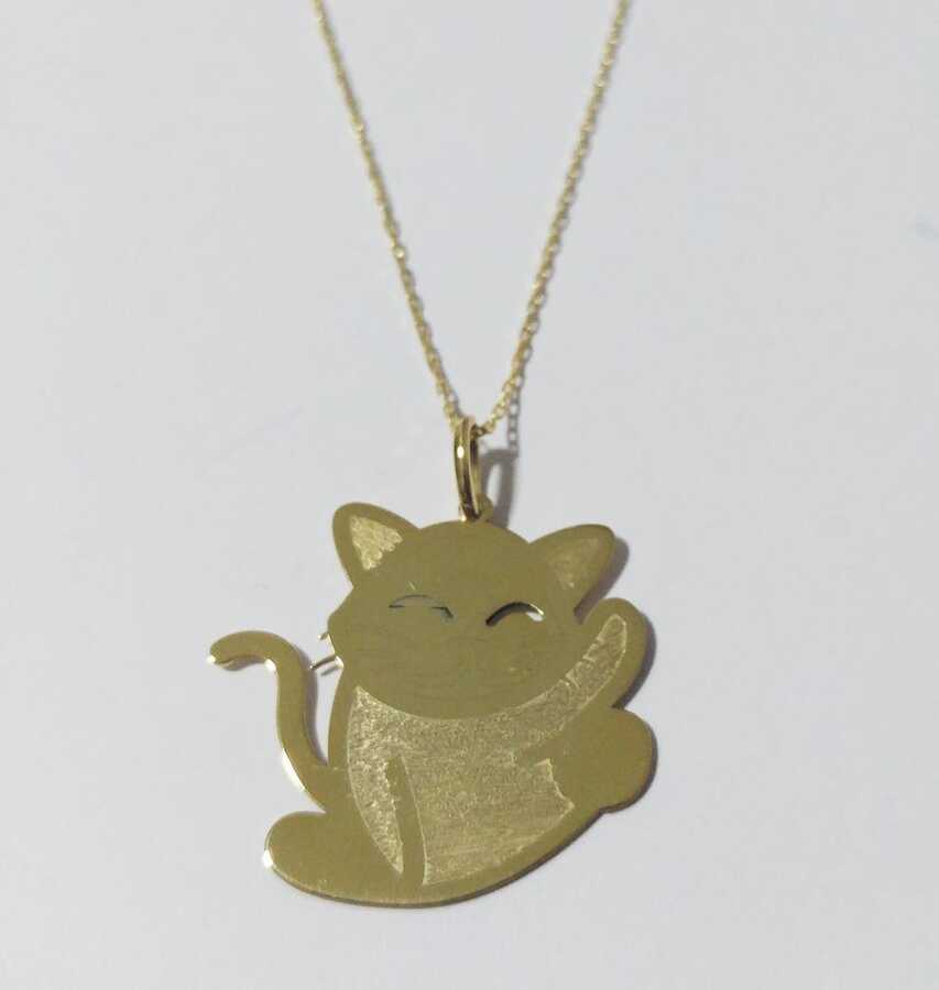 Petcanlar Tonbul Kedi Gümüş Kolye Gold 925 Ayar