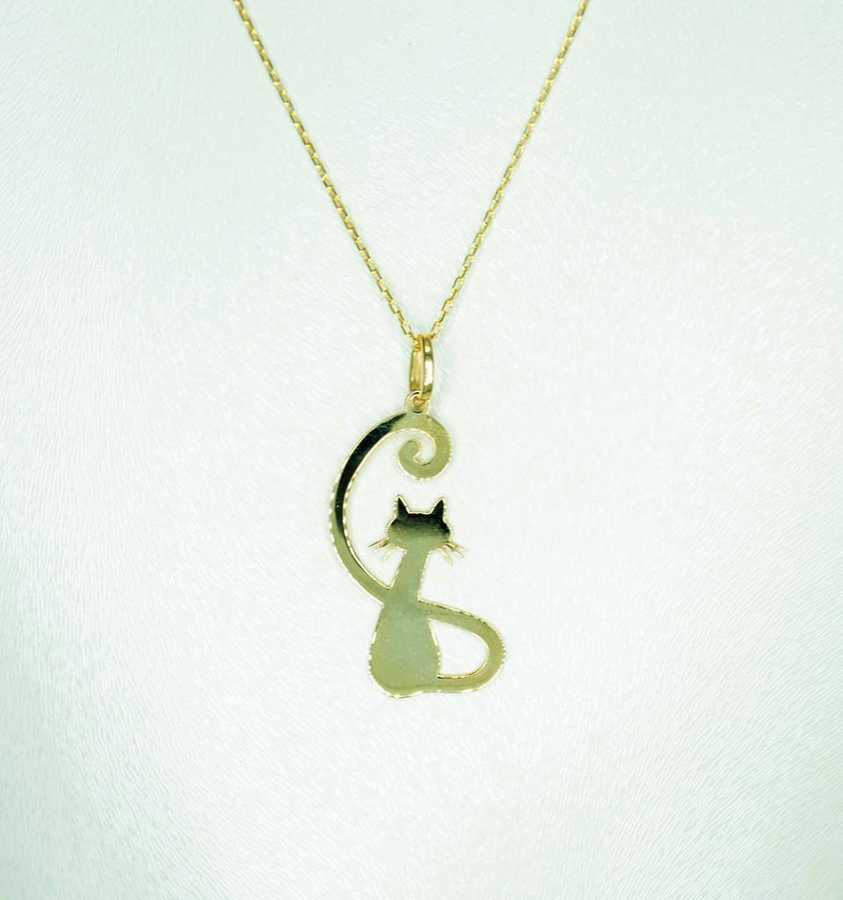 Petcanlar Uzun Kuyruklu Kedi Gümüş Kolye Gold 925 Ayar