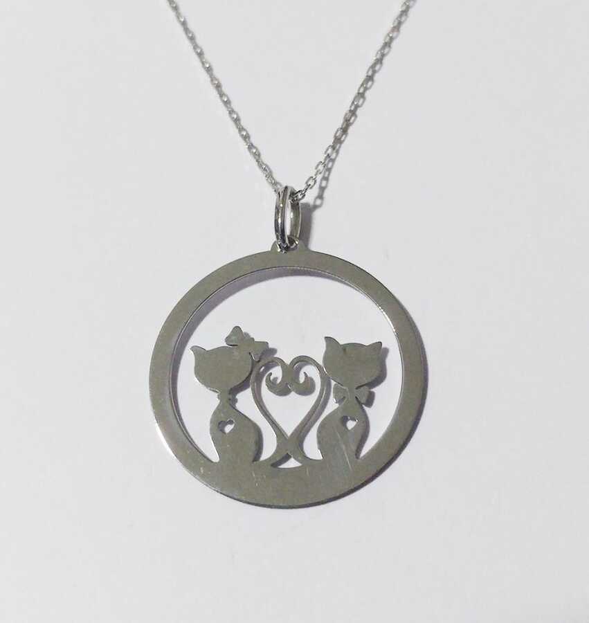 Petcanlar Yuvarlak İçinde Kalpli Kedi Gümüş Kolye Silver 925 Ayar