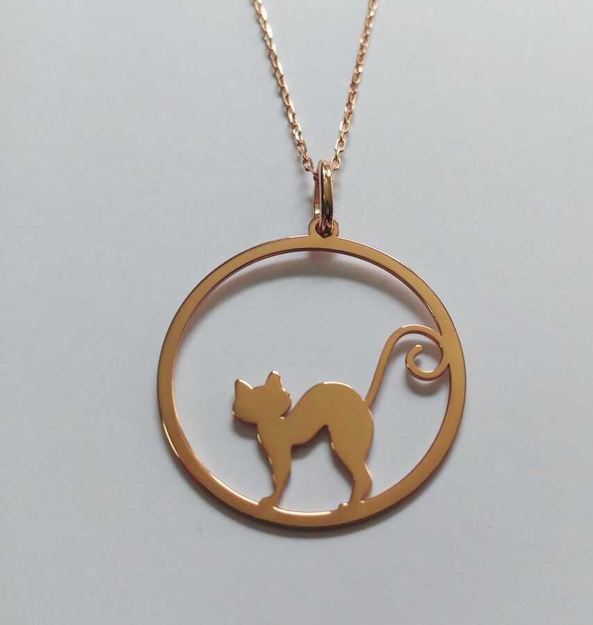 Petcanlar Yuvarlak İçinde Kedi Gümüş Kolye Rose 925 Ayar
