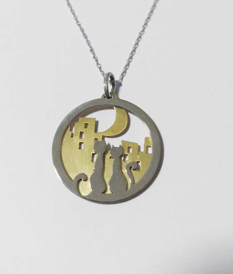 Petcanlar Yuvarlak Manzaralı Kedi Gümüş Kolye Silver Gold 925 Ayar