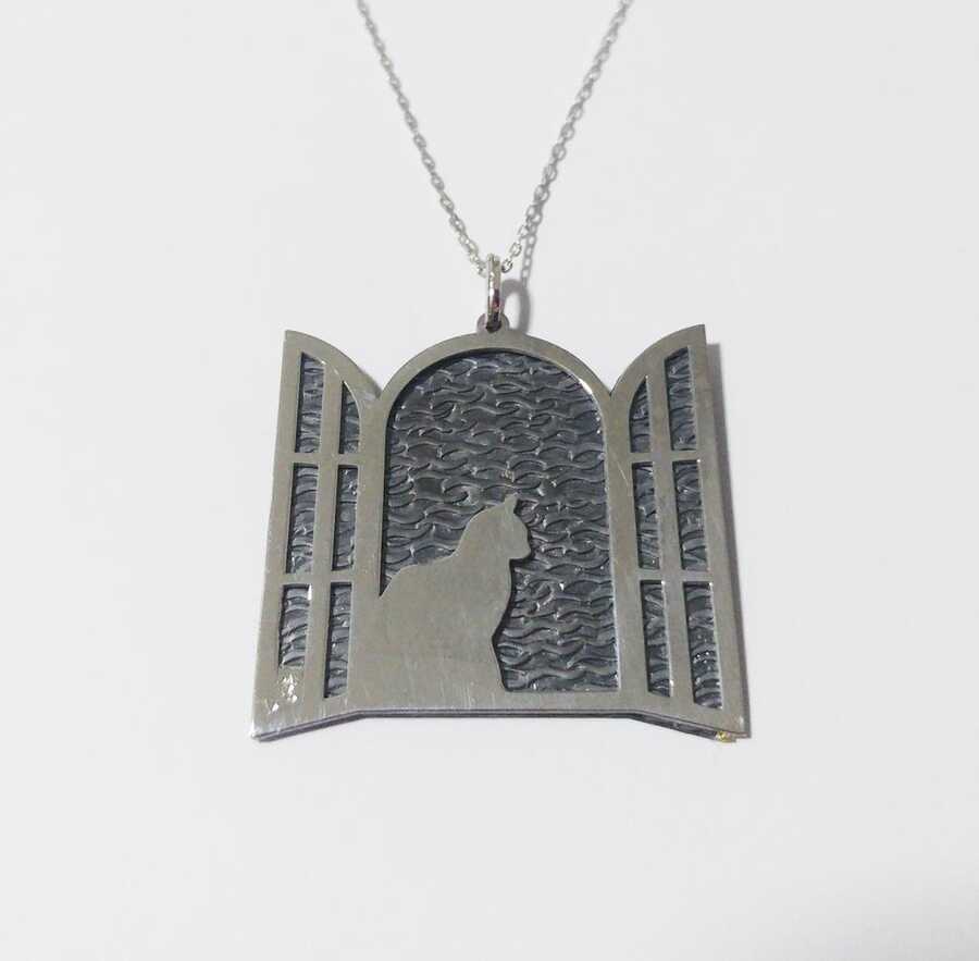 Petcanlar Zetina İşlemeli Kedi Gümüş Kolye Silver Black 925 Ayar