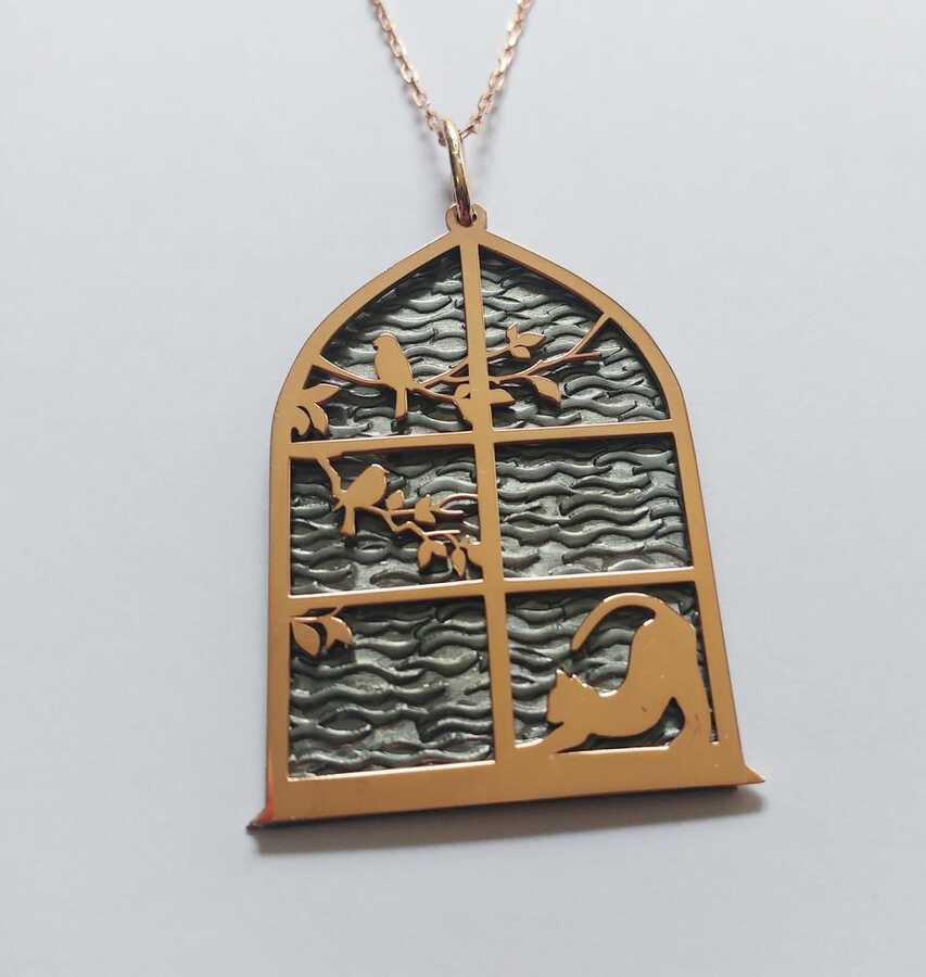 Petcanlar Zetina İşlemeli Kedili Kuşlu Gümüş Kolye Rose Black 925 Ayar