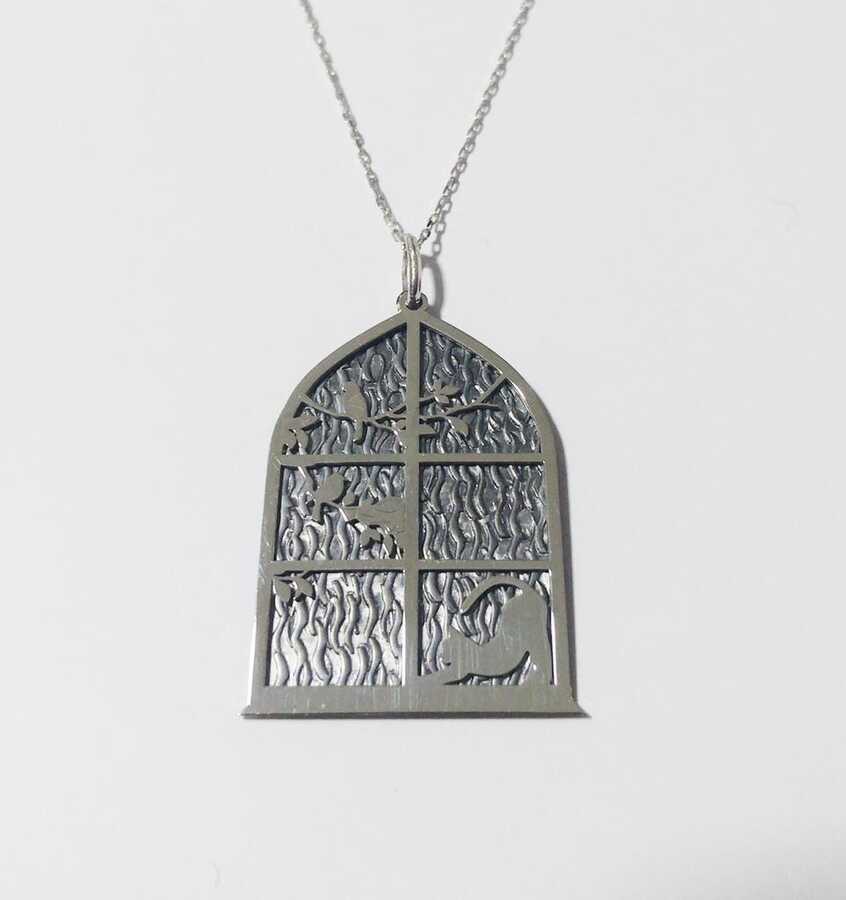 Petcanlar Zetina İşlemeli Kedili Kuşlu Gümüş Kolye Silver Black 925 Ayar