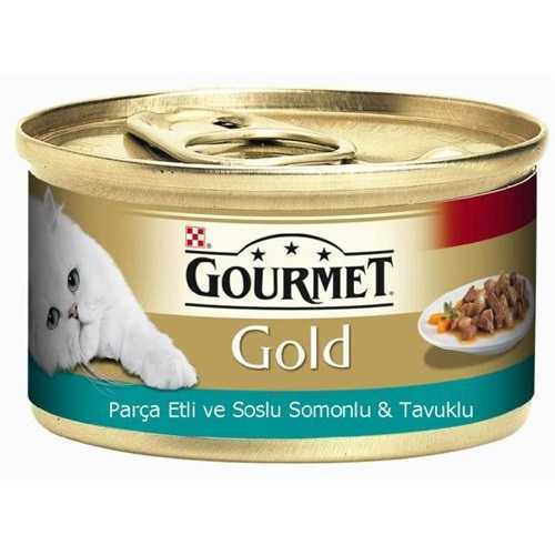 Proplan Gourmet Gold Parça Etli Soslu Somonlu Tavuklu Kedi Konservesi, aktivite seviyeleri normal olan yetişkin kediler yaş 1-7 yaş için tasarlanmıştır. Erişkin kedilerin günlük enerji gereksinimleri dikkate alınarak tüm ve biyolojik olarak aktif besin maddeleri için tamamen dengeli yiyecek olarak tasarlanmıştır.Protein miktarı içeriği % 7,5-12 dir. Optimum kas korumak için gereken miktardır ve konservede bu miktara göre hazırlanmıştır.Yağ miktarı % 3,7-7,0 arasındadır ve mu miktar bir kedinin günlük enerjisini karşılamaya yeter miktardır.