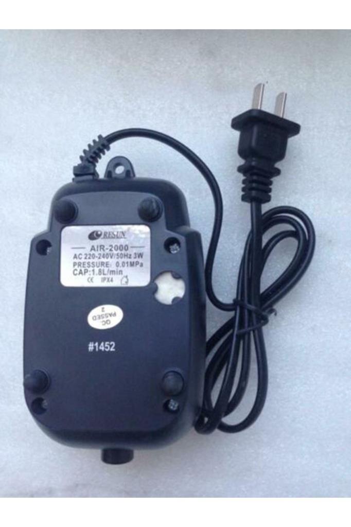 Resun AIR 2000 Tek Çıkışlı Hava Motoru ; 140 Litreye kadar olan akvaryumlarda oksijen sağlamanın yanında, suda doğal bir dalgalanma yapan,tek çıkışlı düşük ses ve enerji tüketimine (3W) dakika da 1.8 Litre hava pompalama kapasitesine sahip hava pompasıdır. ; Kullanma Talimatı; ; Kurulumu ve çalıştırılması oldukça kolaydır. Öncelikle akvaryumdan yukarıda, kuru bir yere konulması gerekir. Eğer akvaryumun kapağı varsa akvaryum üzerine konulabilir. Özellikle yukarıda olmasına dikkat edilmelidir. Aksi halde pompaya suyun geri dönüşü söz konusu olacağında pompa arızalanabilir. Pompa uygun bir yere yerleştirildikten sonra hava çıkış borusunun ucuna hava motoruna uygun olarak temin edeceğiniz hortumun takılması ile pompa kullanıma hazırdır.< ; Uyarılar; ; Pompa kullanılmadan önce takılacağı priz kontrol edilmelidir. Prizdeki arızalar aletin bozulmasına neden olabilir. ; Pompanın takılacağı priz ve pompanın konumu önemlidir. Islanmayacak şekilde yukarıda ve uzak konumda olmalıdır. ; Pompa akvaryumdan aşağı konumda yerleştirildiği taktirde geri su akışı olacağından pompa bozulabilir. ; Pompanın akvaryumdan yukarıda kuru bir yerde olmasına özen gösterilmelidir. Akvaryum içerisine düşürülmemelidir. Düştüğü taktirde fişi çekilmeden su içerisinden çıkarılmamalıdır. Elektrik çarpmasına neden olabilir. ; Pompa su içerisine düştüğü taktirde fişi çekilerek çıkarıldıktan sonra bir kaç gün kuruması beklenilmelidir. Kuruduğundan emin olunduktan sonra tekrar çalıştırılabilir. ; Pompa sürekli çalışır vaziyette kalmalıdır. Hortumu ayrıldığı ve su gelmemesine dikkat edildiği sürece temizlik sırasında da çalışabilir. Ancak fişi çekildikten sonra temizlik yapılması tavsiye edilir. ; Kesinlikle yağlanmamalıdır. ; Hortum kontrolü haftada bir kez mutlaka yapılmalıdır. Bu amaçla hortumun ucundan bir miktar hava üflenip tıkanma olup olmadığı kontrol edilmelidir. Tıkanma söz konusu ise özel hortum fırçası kullanılarak tıkanmalar giderilmelidir. ; Teknik Bilgiler : Güç ?3 W Hava akışı :140 L / Saat, Dakikada 1.8 Litre Çıkış: 1 Hava çıkış ayarı yok