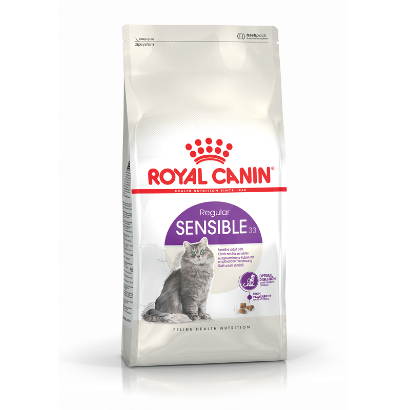 Bazı kedilerin sindirimle ilgili hassasiyeti yumuşak dışkıya yol açar. SENSIBLE 33 optimal sindirim güvenliğini (L.I.P.*) desteklemek için özel bir besin kombinasyonu ve dengeli bir bağırsak florası için prebiyotikler içerir. yüksek sindirilebilir protein.