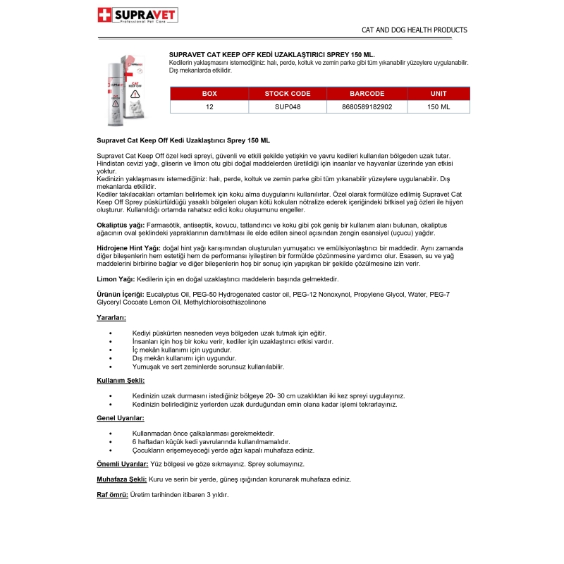 Supravet Cat Keep Off Kedi Uzaklaştırıcı Sprey